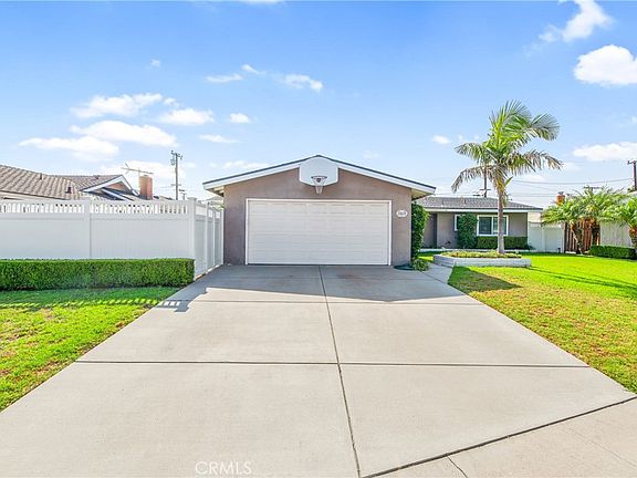 A thoughtfully expanded home that shows beautifully, infused with natural light. The living space is perfectly connected, including a charming front room with a fireplace, a large dining room with custom built-ins, a cozy family room, and an expanded kitchen. The family and living rooms have sliding doors leading to the lovely back patio and yard. The dining room has an attached sunny courtyard, perfect for dining outdoors. The floor plan is highly functional. The kitchen is in the center, easily accessible from the living space, creating a desirable gathering space. The kitchen is complete with wall-to-wall custom cabinets, extra counter space, a cute breakfast bar, granite counters, and nice appliances. Entertaining becomes easy as each room is well-connected, providing plenty of space for family and friends to enjoy conversation indoors and outdoors. Fountain Valley has the best of everything, the best schools, great restaurants, safe communities, and just a couple of miles to the sandy beaches of Huntington. The lot is 7575 SqFt, located on a prime, tranquil cul-de-sac. It has a west-facing backyard, perfect for gardening, an ADU, or relaxing in the sunshine. There are three bedrooms and two bathrooms, spotless, well maintained. There is potential for an RV. Part of the front yard has been enclosed as a courtyard but could be used for an RV if desired. Award-winning schools, Close To Shopping, Restaurants, Entertainment, Parks, and Freeway Access. Only about 3 miles to the Beach!