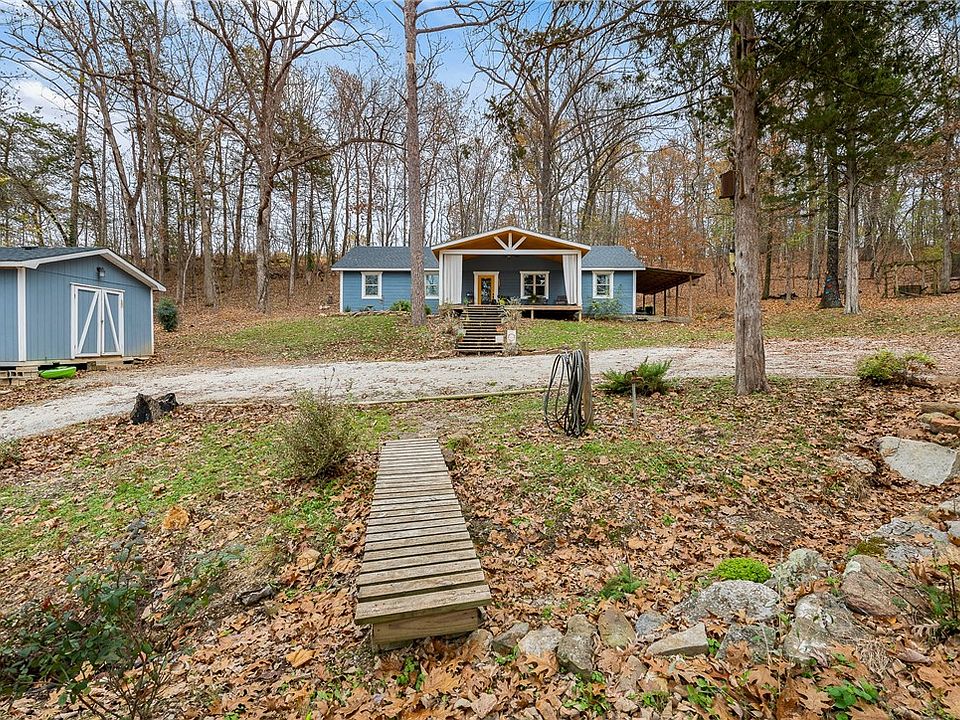 Adorable 3 bdrm, 1 bath, completely remodeled, modern farmhouse tucked away on 1.66 acres w/ view of Beaver Lake. This home features an eat-in kitchen w/ pantry, living room, bonus/game room & large mudroom/laundry. Just a few noteworthy touches are the hand-carved kitchen countertops, shiplap throughout, white subway tile, Farmhouse kitchen sink, barn door & French pantry door. Take in the peaceful scenery on one of two covered porches & enjoy the lake view off of the oversized front porch. Newer HVAC, roof & windows. Enjoy lake access at War Eagle Marina (0.5 miles), public use area at War Eagle Blacktop WC 95 (1 mile) & War Eagle Cove (2 miles). Great weekend home or VRBO location.