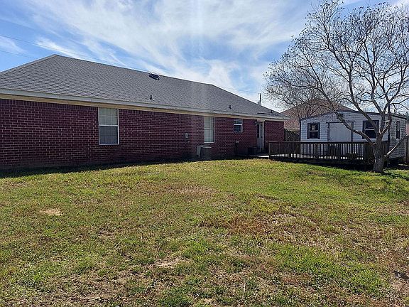 3 bedroom, 2 bath home has fresh neutral paint. Greatroom has turtle-back ceiling. Dining area is adjacent to cheerful kitchen with kitchen window. Master is roomy with private bath that's been upgraded with marble surround and large walk-in closet. In fact, there's no shortage of closet space here. Spare bedroom also has walk-in closet. Level backyard features a 15x12 deck, plus a 15x11 storage building and shadow-box privacy fence. Easy to see and even easier to buy! AS-IS