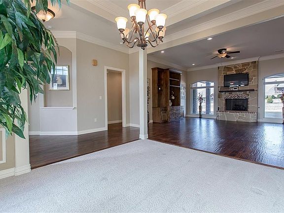 1 Acre home in Celina within minutes of Celina High School. Spacious 1 story home beautifully upgraded with crown molding, trey ceilings & hardwood floors. Large office with builtin cabinets off entry & spacious dining roomy enough for big holiday gatherings flows into living room with gorgeous stone fireplace & builtin entertainment center. Dream kitchen with granite counters, b'fast bar, pot filler, double ovens & stainless steel appliances. Large master bedroom with direct access to patio. Relax in the beautiful master bathroom with granite counters, large vanity, jetted tub & shower. All secondary bedrooms are generous in size. Enjoy the large backyard with endless possibilities for entertainment.