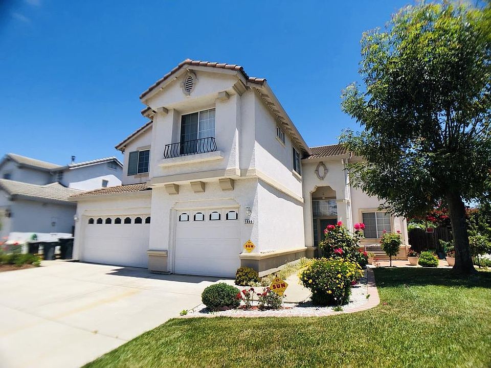 CORNER LOT BEAUTY features 4 spacious bedrooms, 2.5 baths, 2,351 square feet of open living space & a 3 car garage! Features include a living/dining room area, open kitchen with breakfast bar, tiled counter tops and back splash, custom tile floors with accent, family room with gas fireplace, elegant spiral staircase, extra large master bedroom with 2 walk in closets, satilo tile front patio & backyard with cement patio.