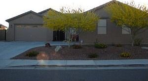 Entertainers Dream Home! Your guests will be amazed at your hospitality and the accommodations in this absolutely gorgeous home that shows like brand new. 3 bedroom + Den + Casita with it's own bath,sitting room and private entrance from the 3rd garage! Master bedroom has it's own sitting room plus double sinks and a glass block shower in the master bath. Kitchen has upgraded counter-tops, double ovens, Corian counter-tops. Home has air filtering system, pre-wired for sound, beautiful 20 inch tile. Back yard has full patio, sparkling pool and is surrounded by pavers. Storage unit on side yard. RV gate. Iron gate at entrance, wall unit in family room, refrigerator and the air conditioner in garage do not convey. Home sold as is.