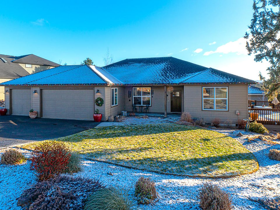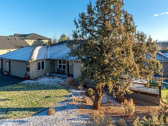 Gorgeous single level custom home with beautiful views of the Ochoco Mountains and Redmond City lights. The open-concept floor plan features a great room with engineered hardwood floors, tray ceilings, a cozy pellet stove, and direct access to the expansive deck. Gourmet kitchen with slab leathered granite, stainless farm sink, huge island with breakfast bar, built-in buffet, and walk-in pantry. Master suite with walk-in shower, sauna, walk-in closet, and access to the deck with hot tub. Spacious guest room, full guest bath with walk-in shower, and third guest room/office. Utility room with tons of built-in cabinets for storage, & utility sink. Triple car garage and large storage area under the home for storage toys, garden equipment, and holiday decorations. This home has many accessible features and an energy-efficient ductless heating and cooling system. Eagle Crest is home to three 18 hole golf courses, three sports centers, an 18 hole putting course, a spa, and miles of trails.