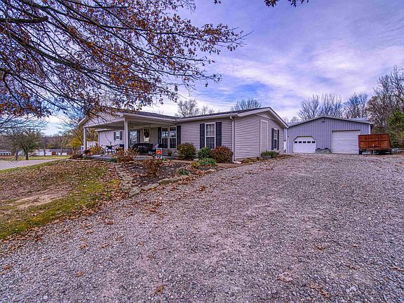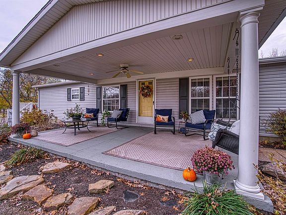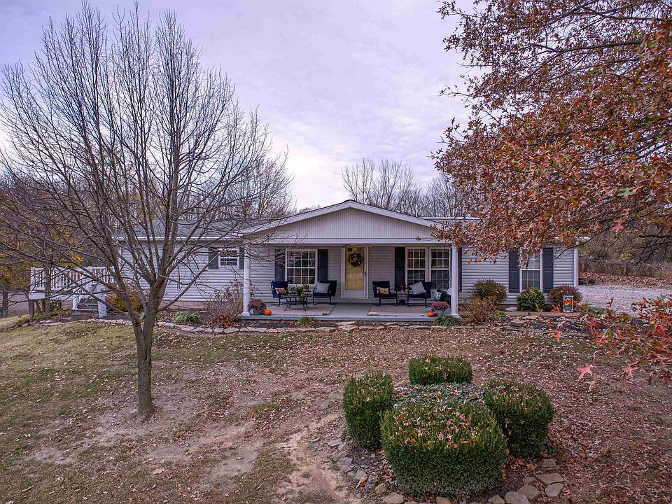 Looking for acreage and a pole barn? Then do not miss this opportunity. Sitting proudly on 1.84 acres, this home offers three bedrooms and two full bathrooms. From the covered porch, the main entrance opens to the great room that boasts a wood burning fireplace. You will appreciate this open floor plan, LVP flooring throughout the two living areas and the formal dining. Kitchen features include Amish cabinets, corrugated metal backsplash, ceramic tile flooring, a generous sized island, and a built-in desk. The owner suite features two closets and a fully remodeled bathroom. Bathroom upgrades include a custom shower with waterfall showerhead, soaking tub, and a dual vanity. Two additional bedrooms share a full bathroom with tiled shower. Enjoy relaxing on the composite deck out back. The pole barns are a workman’s dream. The barns are connected and offer a glorious amount of space for parking vehicles, equipment, storage, workshop, etc. With concrete floors, utilities and a wood burning stove, the possibilities are endless. Conveniently located, well maintained, and ready for you to make your very own.