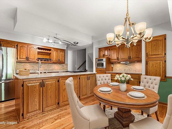 5 bed, 2 full & 2 half bath home with brand-new roof and gutters. Features and updates include 3-zone heating, single-zone central A/C, new and refinished flooring (2017), sunroom with new windows (2023). Updated kitchen with solid surface counters, stainless appliances, gas downdraft stove, and abundant storage and prep space. Double-sided gas fireplace, new boiler (2017), water heater (2020), and driveway (2020). 200 Amp panel with room to expand. Well for outdoor watering (permit thru 2029), 2 patios. Luxurious primary suite with heated bath floors, marble walk-in shower, Bluetooth fan, extra vanity, his & hers closets with built-ins. This home is the perfect blend of thoughtful upgrades, smart functionality, and timeless style. Don't miss out on this well cared for and updated home