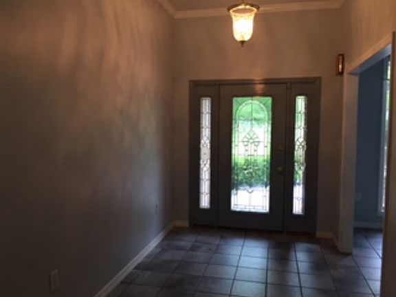 This yard is perfect! Well maintained lot has plenty to offer. A 25x45 out building with satsuma, lemon, apple, kumquat, pecan trees and blueberry bushes. A pond, lush landscaping and a very spacious screened porch off the back of the home. Entering the foyer with soaring ceilings it opens into a large living area with plenty of room to entertain. Large bedrooms and baths. Fresh paint.Very clean. New A/C