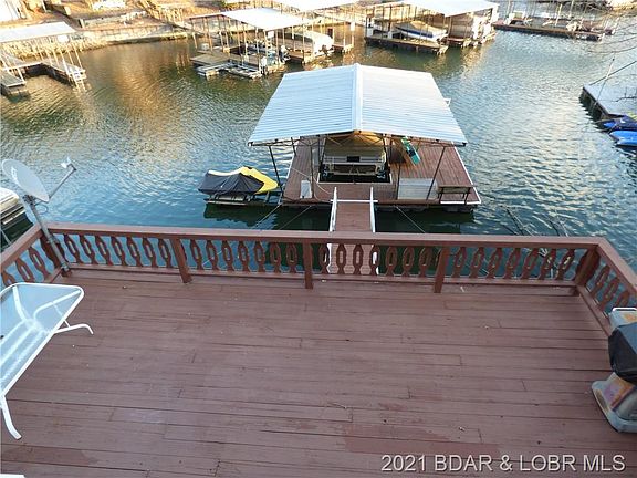 Don't let this turn-key lakefront cabin pass you by. The complete package including furniture, pontoon boat, jet ski & paddle boat. This well-maintained cabin features vaulted ceilings in the bedrooms that are lined with pine car siding giving it a warm open feeling. With a large master bedroom located on the main floor and 2 more bedrooms located upstairs (no closets) they'll be plenty of room for the whole family. You'll soon find yourself wanting to spend the whole day out on the large lakeside deck that sits back in a protected cove but yet has a great view. If you're looking for a good fishing spot the owner says the fishing is great and crappie beds are in place around the dock. In the front of the house, there's room to park 2-3 cars with plenty of room for expansion if desired. All of this is located only 15 minutes from Lake Ozark providing everything you'll need so you can get back to lake quickly for more fun and relaxation. Start making your lake memories today!