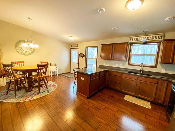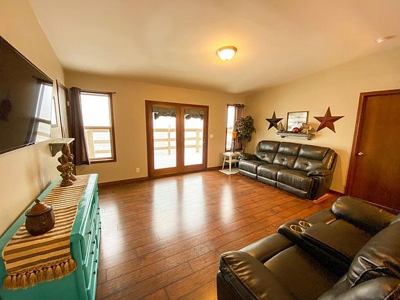 Recently constructed home with lots of privacy. Four plus acres nestled beside a row of timber. Iowa River off to the north. Main floor living offers two bedrooms, one being a master suite with over sized closet. Handy laundry room off of kitchen with a guest bath. Lower level offers the third bedroom plus a half bath and a spacious family room. Outside enjoy the extra metal building to keep your toys. Nice front deck to sit and relax on.