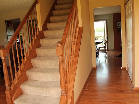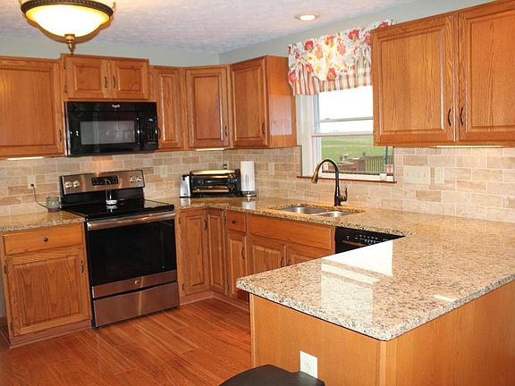 Country escape on 7.99 acres convenient to Newark and Rt. 62 for an easy commute to the Columbus area. This 3500+ updated Colonial home offers an open kitchen/great room concept, fireplace,formal dining and living area. Kitchen offers granite countertops with undermount sink, travertine backsplash, stainless steel/black appliances remain. Entertain outside on the spacious deck overlooking the beautiful countryside. Newly remodeled master bath offering granite, double sinks, frameless tile shower and jacuzzi jetted tub. Newly finished walkout lower level adding two living/family room areas, bedroom, new bathroom and a private patio.Homeowner added 30x40 pole barn with electric and 12'-15' concrete pad. Pool with wrap around deck.Apple, peach and walnut trees (2 of each)