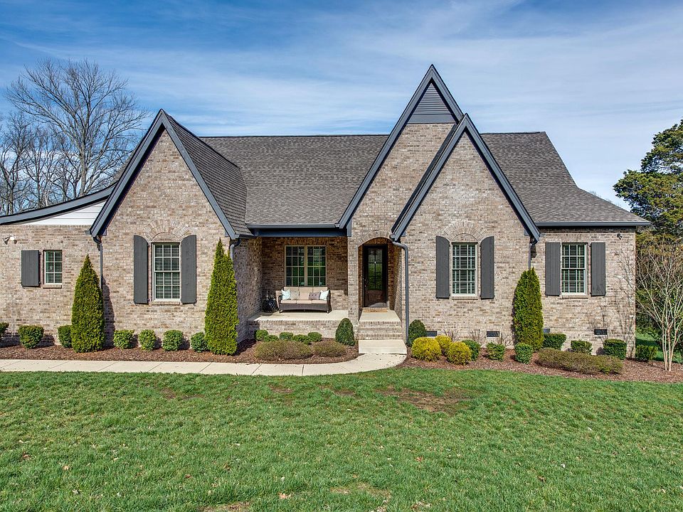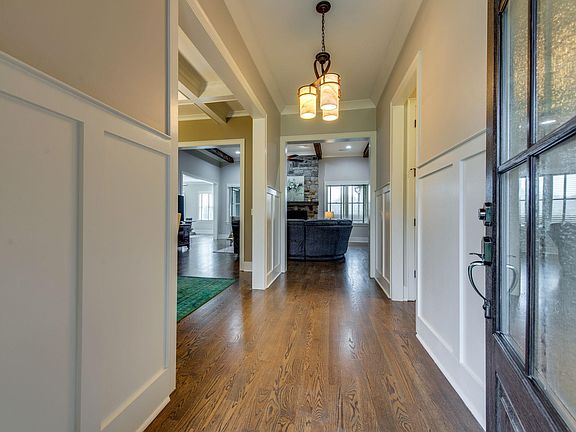 Do not miss this stunning 1 level living home, located on a half acre that backs to common space with trees. Home includes many designer finishes throughout such as gleaming hardwood floors, crown molding, custom beams, gorgeous stone surround fireplace & gourmet kitchen. Kitchen contains an oversized island, walk-in pantry, custom cabinetry, granite countertops, pot filler, SS appliances, gas range/hood & beautiful custom tile backsplash. Covered front/back porches with fireplace.