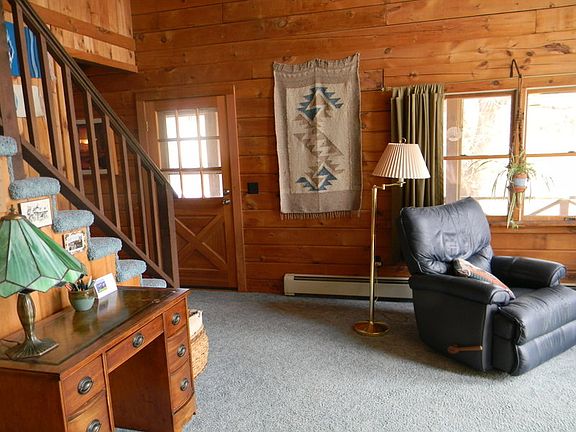 This contemporary log home, nestled on 10.2 beautiful acres in just outside Hinesburg Village is sure to please. It offers 3 bedrooms and 1-1/2 baths, lovely kitchen, formal dining room and a great room to die for. Soaring ceilings here and tons of natural light. 1st floor offers a den with atrium door to wraparound deck, but could be bedroom if needed. Basement has large room sheetrocked, just needs ceiling and carpet. Garage is detached, offers two bays and a generous loft for dry storage or hobby area. Extensive perennial gardens and former garden space. Land is about 50% open and balance wooded.