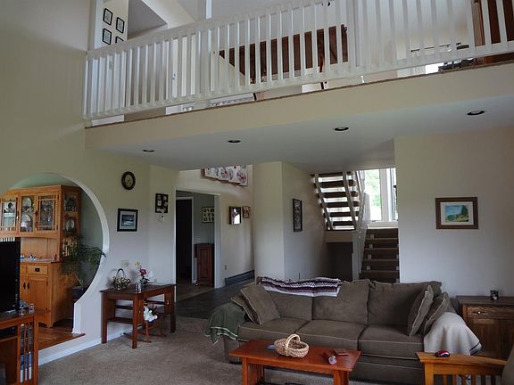 BRING YOUR OFFERS to this meticulously cared for custom 1980's built, contemporary style home, situated on 20.5 open acres with 1286' frontage on town paved and maintained road. Inside this home, you'll find a spacious kitchen with Wood Mode Cabinetry and quartz countertops. The tidy laundry/mud room is access to the two car OVERSIZED GARAGE, with storage area. The bright dining room w/ two picture windows, adjoins the living room with its wood burning fireplace and Atrium door to the back deck, where the scenic views of rolling hills greet you each day. Also on the first floor, is a separate, 19'x15', master suite with a 5'x12' walk-in closet, a spacious master bath with spa tub and a private covered porch. The winding staircase leads up to an open and bright multi-purpose loft. You'll find two bedrooms down the hall, one of which adjoins a full size bathroom with double sink. Closets Galore! The DRY, full, (raised master suite on slab, with insulated floor) walkout, mostly finished, basement has more storage space and two additional rooms. This property has much to offer with its 1286' road frontage, open fields and views! This gem is just 5 miles off NYS Route 20 and approx. one hour from Albany. Wood Foundation provides for a warm, dry basement. Come see it for yourselves! Information provided at viewing.