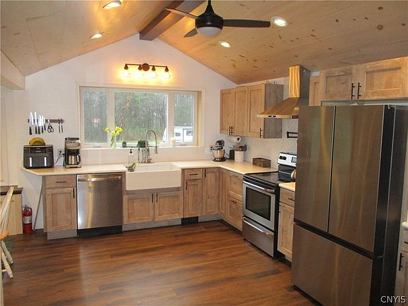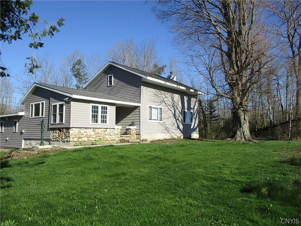 Beautifully renovated & maintained Colonial situated on over 15 acres in the Town of Oswego! Major improvements include The Kitchen, which was totally remodeled with new soft open cabinets, Solid surface countertops, all new appliances, new flooring, new ceiling, new lighting, built in pantry and new windows! The Home features include three bedrooms, two full bathrooms, large open living room, first floor laundry, and a mud room off the rear of the house. An airtight wood burning stove serves as an additional heating source which heats the whole house. Enjoy the outdoors with plenty of trials, a private pond loaded with fish, and a 24 x 40-foot Garage with a heated workshop with concrete floors. Notice the great backyard with a fenced in garden for growing vegetables and outdoor activities. Invisible fence circles the whole yard. With a new roof 6 years ago, maintenance free siding, and all the recent improvements the home is move in ready!