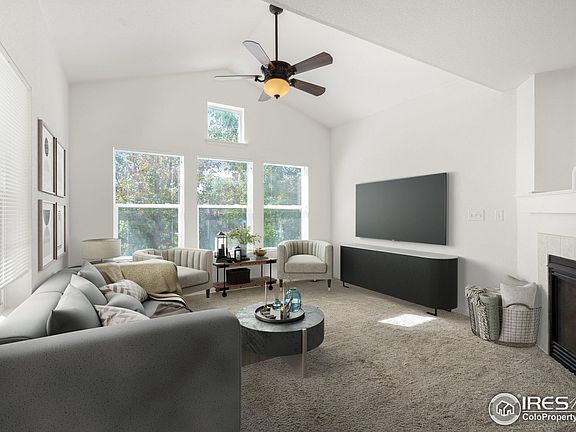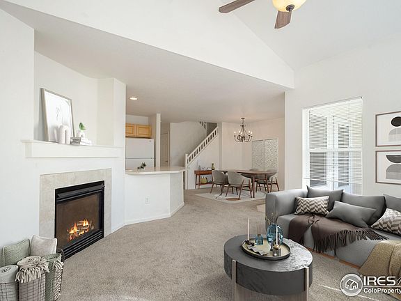 This low maintenance townhome is located near great schools, shopping, restaurants, and across the street from all the swimming/ boating/ fishing/ camping/ picnicking that summer days at Boyd Lake have to offer! The private courtyard faces south and overlooks greenspace and a calming creek. This open concept floor plan will allow you to prep a great meal while chatting with family and friends or enjoying the warmth of your fireplace on the chillier days. Upstairs you'll love the large bedrooms with their own baths, huge closets and an additional loft/flex space. The basement has room to store all your gear or expand for more living space in the future as it has rough-in plumbing for another bath and a large egress window for another bedroom if desired. The 2 car attached garage has alley access. Located steps away from the neighborhood park, easy access to I-25 and MCR.