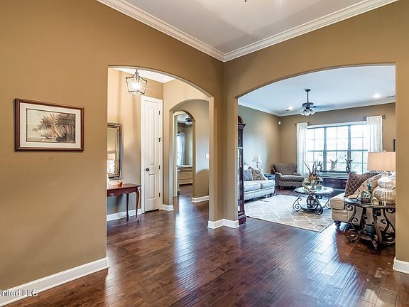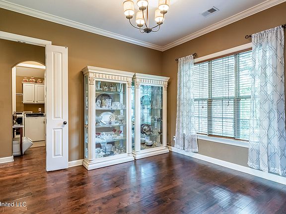 PRICE REDUCED! Don't let this steal get away! Come home to your private oasis situated on a large lot in the Bakersfield neighborhood in Nesbit. Fabulous open floor plan with 10ft ceilings, arched 8ft doorways, and detailed crown molding. The lovely eat-in kitchen features an island with bar seating, custom cabinets, stainless steel appliances, and a cozy breakfast nook. Inviting family room with tall windows, recessed lighting, and gas fireplace. Spacious primary on main with trey ceiling and ensuite appointed with dual vanities, jacuzzi tub, and double-entry shower. Three additional bedrooms and bonus/bedroom all with closets. Recent updates include new carpet, tankless water heater, and a built-in audio system. The backyard provides your own