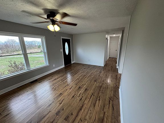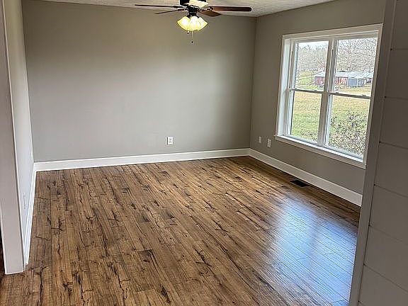This is a 3 bedroom 1 bath home. One bedroom is located downstairs in a finished basement along with the laundry room. One car garage in basement. Complete remodel with new windows and new cabinets and new back deck. Roughly 1700 square foot finished including the basement with a little over 2000 with the garage in basement. 10x16 storage shed in backyard. 2 miles from North Stewart Elementary school and 5 miles from Stewart county high school. 20 minutes to Fort Campbell army base.