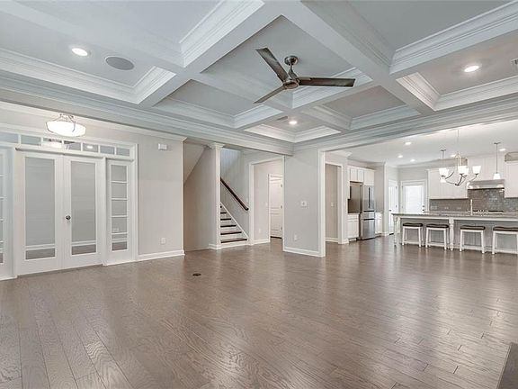 4-sides brick beauty loaded with upgrades in City of Buford school district! Nearly new built in 2020. Welcoming front porch leads into open floorplan with fireside great room complete with coffered ceiling and custom cabinetry with stone tops overlooking bright and sunny kitchen with on-trend white cabinets, x-large island with added storage, subway tile backsplash, stainless steel appliances and separate dining area. Kitchen opens onto spacious deck spanning the width of the house with partially covered space featuring outdoor fireplace and lounging area. Guest suite with full bath with tile floor and tile tub surround on main level. Separate office space with french doors. Brand new hardwoods throughout main level, no carpet. Upstairs features large loft area ideal for gaming and hobbies, master suite with double trey ceiling, two closets and en suite with dual vanity, large tile shower with upgraded fixtures including handheld sprayer and garden tub. Two additional bedrooms up are both generous in size and share jack-n-jill bath with dual vanity, tile floor and tile tub surround. Laundry room up with added storage. Finished terrace level with mudroom complete with built-in storage, full bath with tile floor and tub surround and large open concept space perfect for entertaining. 3-car garage! Sprinkler system. Ample guest parking in community.