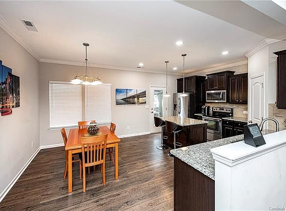 Very upgraded move in ready home. Owner upgraded house to a Total Smart House with all interface equipment-outlets,light switches -hot water heater( hot and cold water on demand) and more. Ring security with security cameras. Kitchen with granite, ss appliances, under and over cabinet lighting and island open to large Great room with fireplace (propane). Split bedroom plan.Master on main. Laundry on main.All living can be on the main floor. Spacious owners suite has upgraded shower with rainhead and floor to ceiling tile. Walk-in closet. Two inch wood blinds throughout. Three car garage with upgraded three foot extention fits a full size truck. Backyard is fenced in with firepit, pergola and propane line to grill (included). Great location. Clover schools.