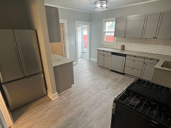 Stainless steel appliancesGranite countertopsNew fixturesTiled bathtub surroundCentral air conditioningTiled flooringBrand new kitchen cabinets