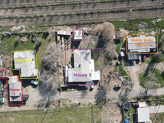 Property has almond trees (Monterey & Non Pareil) 5th leaf. 3 houses and 1 mobile trailer with 100% occupancy bringing $4,800.00 in rental income (all 4 fully renovated in 2019-2020) 1 AG pump & 1 newly dug domestic pump Sprinkle system installed in 2022 for irrigation. Caltrans has offered $50K for 0.9 acre they want to purchase to extend widen the highway by adding a lane which is still to collect. This will be handled during escrow/closing and $50K will go the new owner. Most importantly, this property could be rezoned/developed to Commercial (C-6) Zoning with the right developer. A proposal was made in the past to develop it into a M-3 property but County of Fresno came back with commercial zoning. Letter from County attached along with our plans with C-6 zoning. That will be all on the buyer but the listed price is for the property as is (AG).