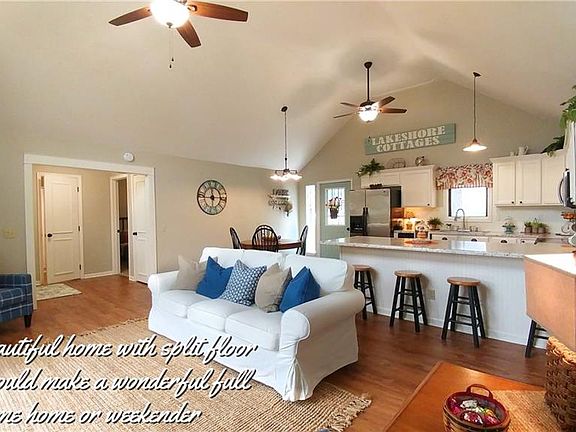 Beautifully remodeled home with new large outbuilding in upscale STERTETT CREEK VILLAGE and full access to Beyonder Marina & restaurants on beautiful TRUMAN LAKE! Wonderful open floorplan lets you entertain your guests after a long day on the lake. Kitchen boasts of 9ft island & stainless appliances. Dining area will hold a large table for entertaining. The split floorplan gives privacy to the homeowner & their guests. Very spacious primary bedroom has full bath & walk-in closet. Just on the other side of the home is a nice size second bedroom with two closets & full bath. Stackable washer & dryer included in second closet. No expense has been spared on this new outbuilding. Fully insulated, wide & tall doors, electric & water. The septic has been run to the tank, but not hooked up yet. This fantastic community has a pool, new pickleball court & community events. Jump on your golf cart to your rented slip and spend a day on the lake. Grab a bite to eat at one of the two restaurants. The marina typically has entertainment on the weekends at the family friendly bar & grill in the summer. Second restaurant is open year around. This would be a great full time or part time home with low taxes & fees, you can have that lake house you always dreamed of!