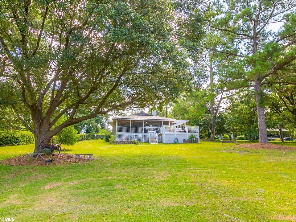 Bennington Pontoon Boat INCLUDED!! Welcome to your new coastal cottage on the Bon Secour River in Gulf Shores, AL. Only 6 miles from the beautiful Gulf Shores beaches. This private waterfront home is situated on nearly an acre lot, including large mature trees providing an abundance of shade. The steel entry gate at the driveway adds security and elegance to this property. Enjoy watching boats and dolphins from the large screened in patio including pull down shades, providing privacy and light control. As you step inside you will notice the pine floors bring a warm and natural aesthetic to the space. Home offers bead board ceiling throughout, adding a charming and traditional touch to the interior. The presence of plantation shutters suggests a classic and stylish window treatment while still being able to enjoy water views from indoors. Inspired by Southern Living magazine, the kitchen has been recently renovated to reflect a tasteful and functional design, featuring modern appliances, quality finishes, and a layout that maximizes efficiency. The bathrooms have been recently remodeled, offering a contemporary and updated look, which feature new fixtures, vanities and tile work. Custom Floor-to-Ceiling Shelving on both sides of the fireplace . These floor-to-ceiling shelves provide ample storage space and a focal point in the room. Boathouse is equipped with boat lift, sink, water and electricity. Bulkhead. 15x12 dock with ladder offers a relaxing area great for fishing, sunbathing or enjoying your favorite meal waterside. Home features ADT and Brinks security cameras. As a resident, you hold a deeded 1/56 ownership share in Bon Secour private park. This allows you to access and enjoy the park's amenities, including boat launch and picnic area. Like new 2018 Bennington Pontoon with less than 100 hrs. 26x30 covered carport.