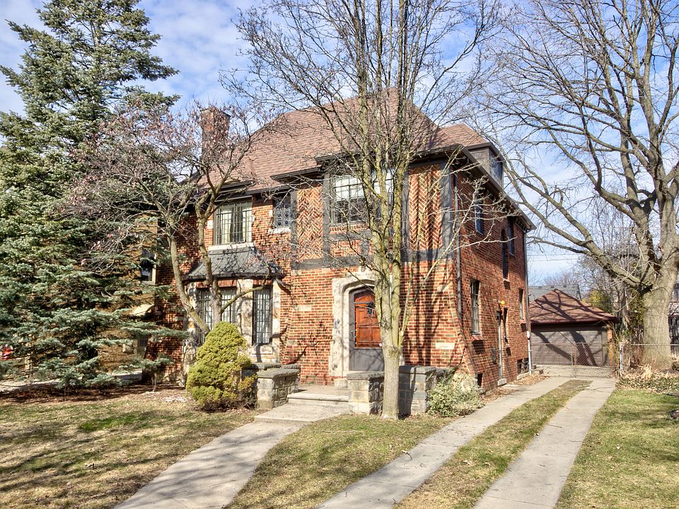 Stunning brick colonial in Detroit features a spacious interior with tons of charming details. Great curb appeal with original stone and brickwork. Inviting entry foyer opens to a light filled living room with a cozy natural fireplace, hardwood floors, built-in shelving, and decorative plaster molding. Traditional dining room with custom glass French doors to an enclosed back porch. Breakfast nook and butler’s pantry lead to a roomy kitchen with ample cabinet and counter space. First floor half bath. Four large bedrooms and two full baths on the upper level. Jack and Jill full bath connect two of the bedrooms. Large third floor attic space with stairway access. Partially finished basement with laundry and lots of extra storage space. Fenced backyard with a covered deck, enclosed porch, and detached two car garage. Welcome Home!