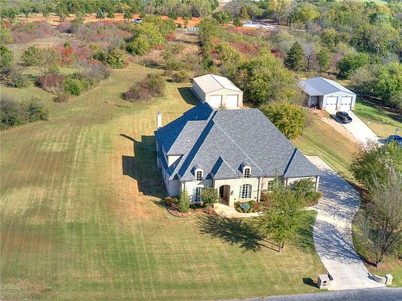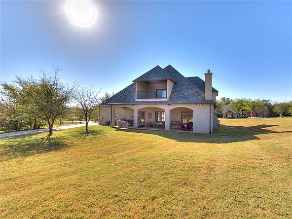 This gorgeous designer built home checks everything off your list. A grand foyer welcomes you with high ceilings, ceramic wood floors, and an open and airy feel. The main living space creates the perfect spot to gather with family and friends with an open concept living, dining and kitchen area. This gourmet inspired kitchen provides tons of storage and plenty of countertop space with a large eat-in central island and oversized pantry. This floor-plan provides a craft room, study and bonus space in addition to three spacious bedrooms each with it's own bath. This master suite is truly a retreat of it's own with a tub made for soaking, walk-in shower, his and her vanities, and large walk-in closet. And that's just the inside! Step outside and enjoy Oklahoma Fall evenings under the covered patio with fireplace, and kitchenette. Or enjoy wooded evening views from the second story balcony.