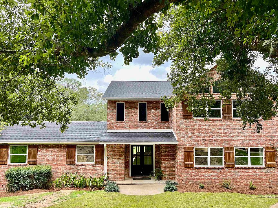 Fish River living awaits on this beautiful waterfront estate. Home completely remodeled in 2021! Roof and A/C both under 2 years old, per the seller. Expansive back deck with hot tub and grilling area are perfect for large family gatherings. The open floor plan features a 2 story entrance foyer that graciously flows into the dining, living and kitchen combination. The kitchen features a gas range, pot filler, quartz countertops, island with bar seating and double oven. The dining room showcases a stone fireplace that will set a warm backdrop for holiday meals. This home sits on 3 acres with 300 ft of waterfront access to Fish River. You are right around the corner from Big Daddy's restaurant and Weeks Bay. Additional features include a tankless water heater, alderwood doors, luxury vinyl plank flooring. The huge master suite has loads of windows allowing for great natural light. Master bath features a custom shower and walk in closet. The landing at the top of the stairs offers great views of the property and the media room is a cozy space for movie night. 2 bedrooms are downstairs and the master is upstairs with all bedrooms featuring spacious walk in closets and ample storage. Brick exterior adds to the low maintenance appeal of this home. Updated home with acreage and water access...what a winning combination hard to find in the Fairhope area. *There are 2 separate, already subdivided lots on this property.* (ANY/ALL UPDATES ARE PER SELLER). LISTING BROKER MAKES NO REPRESENTATION TO SQUARE FOOTAGE ACCURACY. BUYER TO VERIFY.