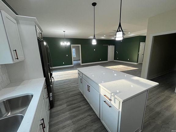 Ready to move to the country? This is a brand new home built by Quality Craft Construction. The floor plan has been carefully selected for you to enjoy easy living. The open concept, split bedroom plan allows for everything to be central to the main living area. Two guest bedrooms at the front of the home share a full bathroom. One of the guest bedrooms has a walk-in closet. The living room dining combo has a great office or bonus space of the side. A deck is off of the dining area. The kitchen features quartz countertops, an island and a pantry. The master bedroom is large and has an en-suite and walk-in closet with custom closet organization. The laundry area leads to the garage and stairs to the full unfinished basement, where there’s room for an additional bedroom, living space, etc. Double doors lead to a patio off of the back of the home looking out over the wooded acre lot. Southern Indiana Power, public water and sewer, and PSC fiber optic internet are available.