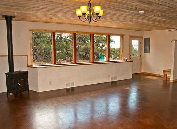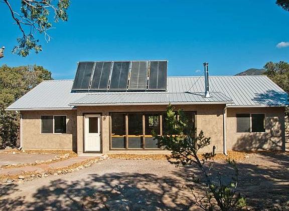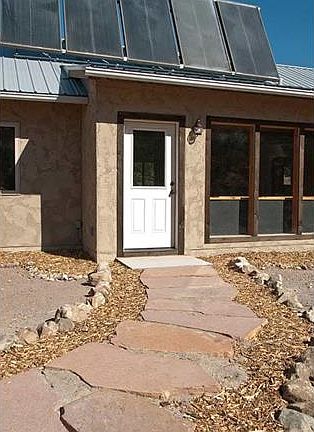 This 1541sf, 3BD/2BA home has been designed with energy efficiency in mind. Monthly electric bills around $80. Active solar hot water system sends heat through the radiant floor grid and supplies the house with hot water. Extra insulation, triple pane windows on East, West and North walls and special heat recovery ventilator system combined with airtight construction keep this home warm and comfortable. The entry has large windows that passively heat the 32" high built-in planter and afford wonderful view of the southern valley. The open living/dining area features concrete floors, wood ceilings and wood stove. The kitchen has a 42" high breakfast bar, energy efficient appliances, tile counters and a pantry. Stacked washer/dryer are in a convenient utility area. Master bedroom with a large walk-in closet and roomy bathroom with a soak tub and shower combo. Radon mitigation system. Well insulated. Hardwire internet. All on .94 acres in a private setting.