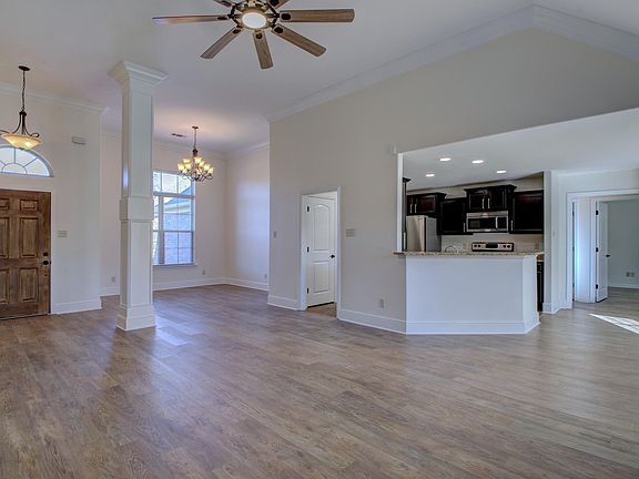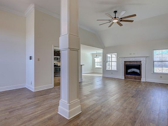 Welcome to this exquisite all-brick home, where elegance meets modern efficiency! Step into a grand entryway with soaring 13-foot ceilings that flow seamlessly into the dining and living areas, creating an open and airy atmosphere. The living room features a cozy electric fireplace, perfect for those chilly evenings. The modern kitchen is equipped with stainless steel appliances, granite countertops, and a refrigerator included. Enjoy casual meals in the charming breakfast nook or host dinner parties in the separate dining area. The split bedroom plan ensures privacy, with the primary suite offering a luxurious retreat. It boasts a walk-in closet, dual vanity, separate shower, and a jetted soaker tub for ultimate relaxation. A versatile bonus room, complete with a mini-split heat and air system, provides additional space for a home office, gym, or playroom. The home is newly remodeled with solid surface flooring throughout, enhancing its modern appeal. Outside, the fully fenced backyard with a patio offers a private oasis for outdoor entertaining or quiet reflection. The 2-car garage provides ample storage and convenience. This energy-efficient home is not to be missed! Call today