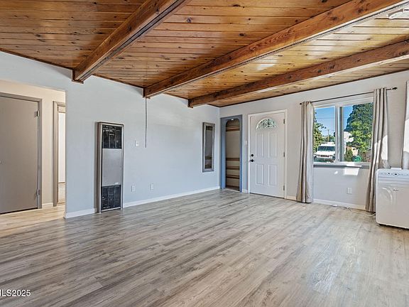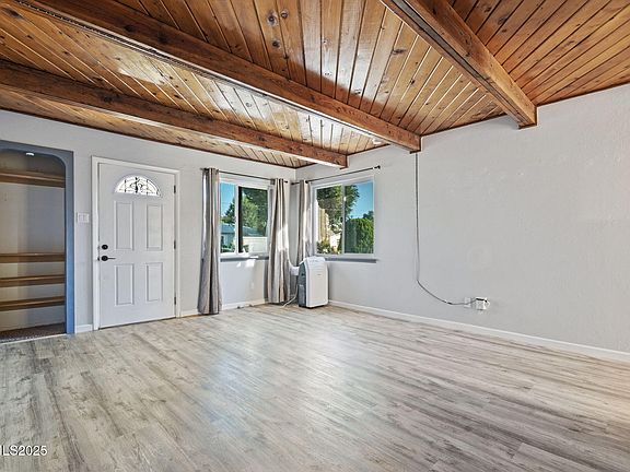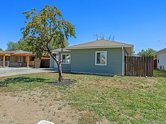 Price reduced! Don't miss this efficiently laid out and beautifully maintained cottage-style home with a spacious fully fenced yard. Recent upgrades include a brand new roof, gutters, electrical, garage door, sprinklers, paint, sliding glass door, water filter/softener unit and a full bathroom remodel. It features low-e double pane windows and LVP flooring throughout the home as well as in the powered outdoor shed, which includes a loft and plumbing hookups for an easy conversion to a potential workshop or guest quarters if you wanted to connect it to water and sewer. Enjoy a fresh peach from your tree from the comfort of your covered deck or step inside and marvel at your incredibly low property tax bill with the warmth and character of the hardwood ceilings as a cozy backdrop. Located less than a block from Pat Baker Park and just minutes from UNR, shopping, schools, bus lines and more, this property is a strong choice for homeowners and investors alike.