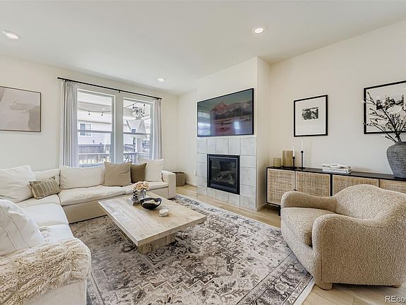 Beautiful 2-story in Prairie Center Village on a spacious corner lot features 5 bedrooms (4 upper / 1 main), 2.5 baths, living room, breakfast nook/dining area, open kitchen, upper laundry, loft/family room and 2 car garage. Meticulously maintained – pride of ownership shines throughout. Over $100k in upgrades including a custom closet (primary), whole home water softener (buyer to assume the lease or can be removed), large covered deck, water heater (2024), exterior electrical outlets for the upper deck television and on the roof for holiday lights.  An energy efficient furnace, central air conditioning and gas fireplace keep this home comfortable all year long. Grill and chill on the rear covered deck & extended patio or people watch from the covered front porch. The many windows and open main level allow the natural light to cascade in – bright and cheerful.  Neutral tones make it easy to picture yourself calling this one home.  Why wait for new when this beautiful home is ready NOW?!  Close to dining, shopping, entertainment and other amenities.  Easy access to I-76 and a short drive to Barr Lake.  Don’t miss your opportunity.  HOA Info provided is actually for the metro district. Welcome Home!
