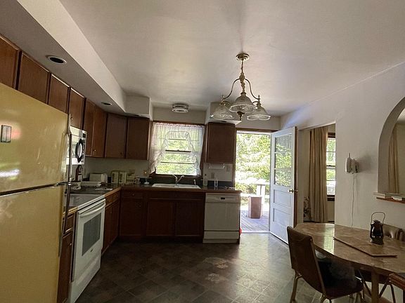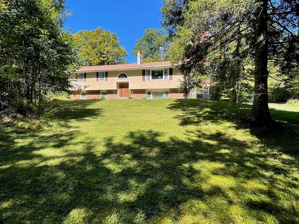 SCHOOL CHOICE! Location, location - Private 6+ acre site offers seasonal views; mature hardwoods; 20-minute access to I-89; 30 mins to Morrisville or St Albans. 15 miles to Smugglers' Notch Resort and 45 mins to Jay Peak. Close to Metcalf Pond for easy paddling and loon-viewing. Late owner documentation indicates house was last updated in late 1990s and early 2000s. Prefer to sell partially furnished. Eat-in kitchen and formal dining room open to living room makes for great-room entertaining. Main floor has beautiful oak flooring. FOUR BEDROOMS. The spacious basement rec room walks out to two-car garage. 200 sq ft shed/barn with electric and seasonal water. The lot is gorgeous and the house is move-in condition but in need of updates.