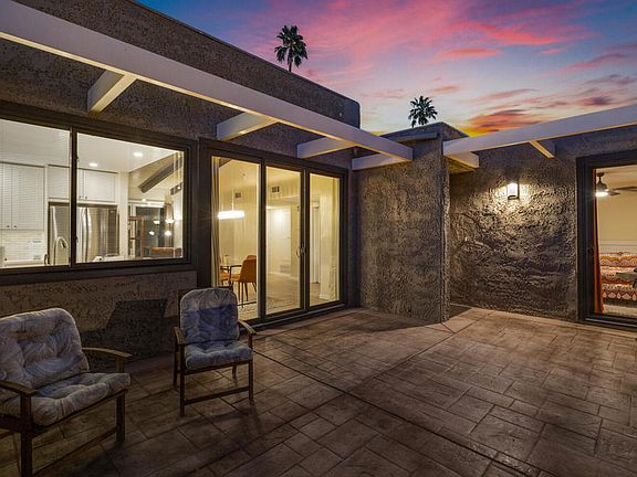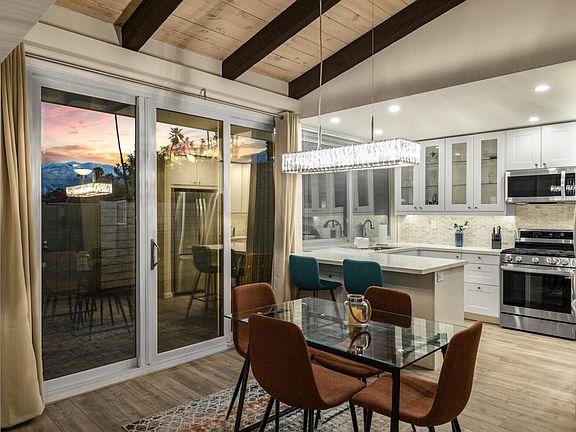 The Total Package Palm Springs Getaway...walls-out remodel. Everything is done. This is the real deal--simply move in & relax! Prime location in Central Palm Springs close to downtown in established community of Sunrise Oasis. Walls of glass frame beautiful mountain views from private patio. Vaulted ceilings, one level living w/attached garage. Stunning attention to detail: All new cabinets & vanities (PLUS additional storage cabinetry. Eye-catching open concept kitchen w/Silestone quartz counters, all new LG stainless steel appliances. Oversized primary bath w/all new in-wall plumbing. All sinks, faucets, toilets, & shower valves upgraded. Energy efficient LED lighting. Light fixtures upgraded inside & out. All new receptacles, light switches & faceplates. New ceiling fans. New mirrored closet doors in all 3-bedrooms. Luxury vinyl plank flooring (bathrooms have new tile), new shower doors in primary bath. All exterior sliders & windows replaced w/ premium grade California Deluxe Windows. New AC & gas furnace with 10-yr extended, transferable warranty. New front door, exterior utility doors (metal) & all interior doors replaced. New stamped concrete slab in front courtyard. Every interior wall skim coated, retextured & painted...Furnishings available separately. Close to community pools & spas. 30-day minimum for rentals, on land you own! Ideal for weekend getaways, full time enjoyment or as an income property. Come live the dream in iconic Palm Springs!
