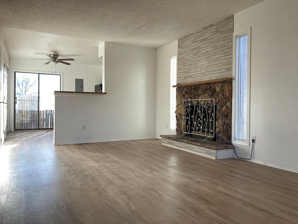 Fully renovated desirable end unit with views of Pikes Peak close to parks, shopping, library, schools, airport and easy I25 access. ** Showings with completed application only. Applications are sent by email. Please do not use Zillow application. Qualifying applicants will have 3x monthly rent and credit score of at least 700. ** Bright and open, lots of storage, nice Whirlpool appliances, real cherry cabinets, deep Kohler kitchen sink with Moen pull down faucet. Luxury vinyl flooring throughout main level, carpet upstairs. Large bedrooms. Decorative fireplace with electric insert. Washer and dryer. Ceiling fans. Small fenced private patio. Exterior storage closet. Reserved parking in front of unit. All new windows. Exterior has just been resided and freshly painted. No smoking. Trash and recycling included. All exterior maintenance and snow removal included. Tenant is responsible for utilities. HOA allows one dog up to 30lbs., 2 cats maximum. Pet deposit of $500 for first pet and $250 for additional pet required.