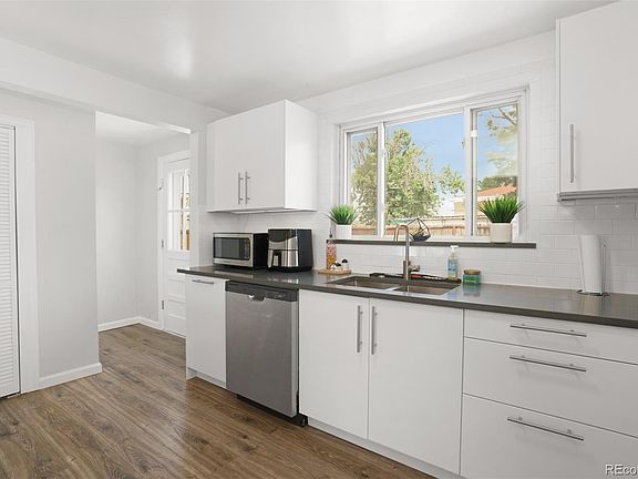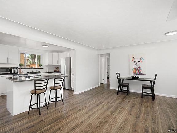 Completely remodeled, this stunning house is the perfect mix of traditional & contemporary styles-custom-textured cove ceilings, chrome finishes, premium laminate flooring, & subway tile throughout. The open-concept kitchen comes with an abundance of soft-close cabinetry, quartz countertops, stainless steel appliances & a cooktop island with barstool seating. Great-sized bedrooms, a ton of natural lot, & a wood-burning fire place. This corner lot sits on nearly a third of an acre, with an incredibly large back yard & a driveway that can fit at least 6 standard-sized vehicles. The oversized garage is perfect for additional storage or a work station. And you cannot beat the location-minutes away from tons of shopping, restaurants, coffee shops, public transportation, Triangle Park, I-70, I-225, & E-470. Come see your new home today!