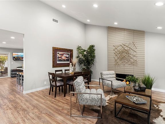 Fabulous Single Story Fully Remodeled Home in Yorba Linda High School District This Open Floor Plan is everything you have been dreaming of. The inviting living room features soaring cathedral ceiling with recessed lighting. The fireplace is floor to ceiling with modern glass rocks fired by gas. Impressive Laminate Flooring thoughout the home. The Kitchen is a dream come true. Beautiful Cabinetry with stunning glass backsplash and quartz counter tops. Stainless Gas Stove with 5 burners. Unbelievable amount of counterspace. Kitchen has Bar Seating and opens to a comfortable family room creating a great room feeling. Sliding Doors lead out to a massive fully covered patio where you can enjoy entertaining rain or shine. If your heart desires a large Master Suite, this is a great home for you. Legally a 4 bedroom the homeowner removed an adjoining wall and is now using it as a spacious master suite with area for office or sitting room. Two sets of mirrored wardrobe doors and sliding doors leading to a covered patio on the side yard. The master bathroom enjoys a beautiful dual sink vanity and walk-in shower plus a privacy toilet. The additional two remaining bedrooms also boast mirrored wardrobe closets and recessed lighting. Hall bathroom is beautiful with dual sink vanity and tub/shower enclosure. The roof is newer composition and the water heater is tankless. Air conditioner is only about 3 years old. The exterior was painted approximately 3 years ago along with the entire remodel inside and out. Laundry is inside. Newer 220 electrial panel. This is a highly sought after neighborhood with great access to shopping and award winning schools. If desired, the home can easily be converted back to a 4 bedroom. Come see this incredible home, you won't be disappointed.