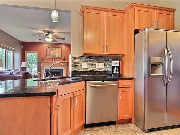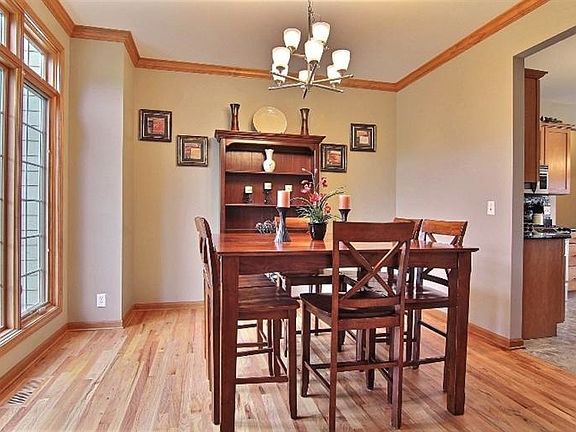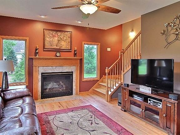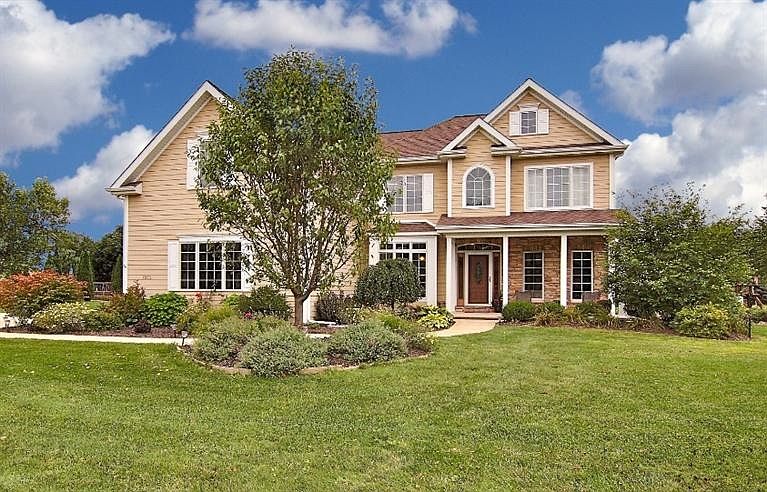 A beautiful two story home with a three plus car side loading garage that's on a half acre lot overlooking a pond! Professionally landscaped, covered front porch, newer stone patio with firepit and a large deck. Upon entering there's a large foyer, formal living room and dining room, crown molding in both rooms plus refinished hardwood floors in the dining room, foyer and family room. The kitchen features maple cabinets, granite counters, stainless appliances and ceramic floors. There's also a gas fireplace in the family room with a large picture window overlooking the pond. The main floor bedroom (or fifth bedroom) could be used as an office and there's a three-quarter bath for a guest. The upper level has a master suite with NEW bamboo floors, a walk-in closet, and master bath with a whirlpool tub, a separate shower with a NEW SHOWER DOOR and two vanities. The second bedroom has double closets. Also, there's a bonus room which is great for the kids to have there own space! The laundry room is on the upper level. The basement is roughed-in with under-slab plumbing. The central air is two-years-old. This home is ready to be moved into and is a MUST SEE!