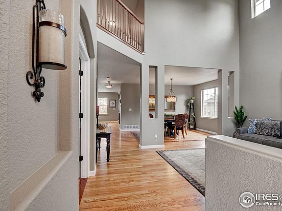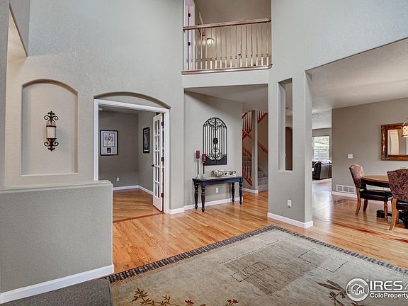 Situated on a cul-de-sac, this magnificent home is south facing AND backs to open space. 5 bedrooms, 4 bathrooms, office, finished basement and a massive 4-CAR garage are just the beginning. Inside of this immaculately kept home you will find oak floors with Brazilian cherry inlay, vaulted ceilings and well designed storage spaces throughout. Kitchen features a double oven, deep granite composite sink, updated granite counter tops, new cooktop, large granite island & tons of storage. If you aren't entertaining in the formal dining room, the kitchen nook comfortably seats 6 and that doesn't include the kitchen island seating! Upstairs, the Primary Suite boasts a large adjacent sitting room, amazing views, dual walk in closets and a gorgeous 5 piece bath with jetted tub. Finished basement showcases a theatre room, bedroom, full bath, designated storage room and space for lots of other activity. Outside, an oasis of tranquility awaits - a beautifully manicured yard, well planned garden areas and landscaping as well as a glorious stream and pond feature that adds to the serene surroundings.The huge concrete patio is perfect for entertaining. Lots of upgrades throughout including Nest thermostats, Rachio Sprinkler system, Hunter Douglas Privacy Silhouette Blinds and much, much more...Right down the street from the Denver Outlets, Orchards Mall, numerous restaurants and parks. Commuter friendly with close proximity to I-25 and E470. MUST SEE! Please call for a private showing.