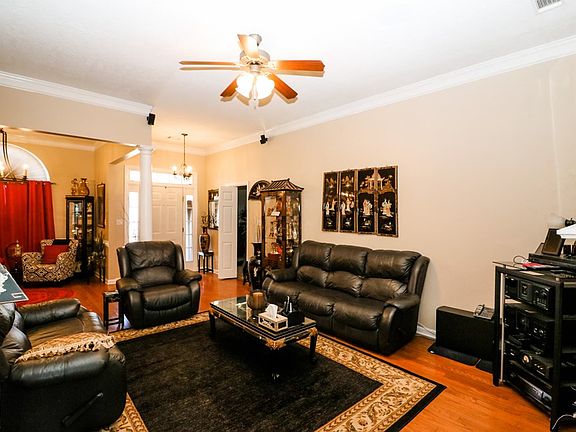 Charming 4 bedroom 2 bath brick ranch on 0.53 acres ready for a new family. Large great room with fireplace and tall ceilings. Owner is leaving ceiling speakers. Dining room, great room and foyer with hardwood floors. Galley style kitchen with ceramic tile, pantry space and granite counter-tops. All appliances including refrigerator will remain with acceptable offer. Spacious owner suite with walk-in closet, sitting area and includes a private bathroom with double vanities, garden tub and shower. Split floor plan with remaining 3 bathrooms on other end of home. Relax outside in the 16x10 covered back porch area. Outside features include a double-car attached garage, sprinkler system, fenced backyard and a 10x8 storage building. This wonderful home is close to shopping, groceries, schools and I-20. Very clean and well maintained home. Call today for your private showing.