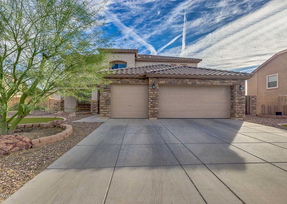 Hurry to see this stunning 5 bed, 3.5 bath Buckeye home before it's gone! This property is situated on a cul-de-sac lot with designer paint colors, upgraded flooring, upgraded light fixtures, and a loft area for added space. The gorgeous kitchen is equipped with ample cabinetry, a pantry, granite countertops, matching appliances, and a lovely island complete with a breakfast bar. The master bedroom boasts a spacious walk-in closet and a full bath with double sinks, and not to mention separate tub and shower. Step out to your expansive backyard, with its covered patio, has tons of potential for customizing it any way you can imagine! Don't let the opportunity to make this your home slip by, schedule a showing today!