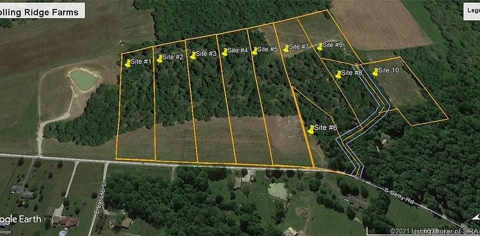 Rolling Ridge Farms is a 10 lot country subdivision on the North side of the small country town of Lexington, Indiana. Lot #9 is at the end of a low traffic 50 foot easement from South Getty Road. The beautiful building site has been surveyed, the septic soil test has been done and the driveway entrance has been installed by Scott County Road Commission and 50 foot easement has been graveled. The home building site on this 2.82 acre lot is open for family enjoyment with few trees and running spring water on the West end. Seller will consider land contract sale.