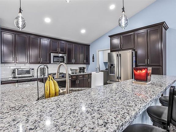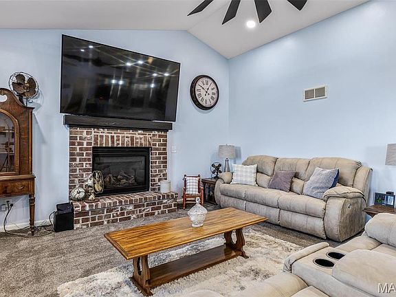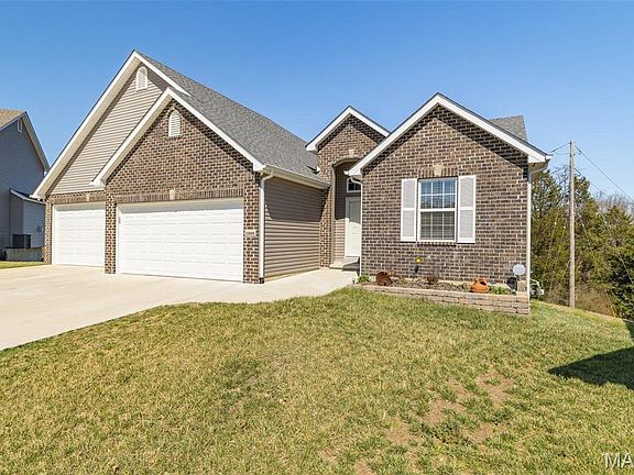 PRICE REDUCTION!!Custom ranch offering over 2700 sq. ft. finished living space with a custom 4 car garage with Electric Car Charging, one bay 8 ft. tall door & one bay 7 ft., man door, insulated, extra outlets & lighting. Main level: Open floor plan with vaulted ceilings, custom kitchen with granite counters, 42 in. cabinetry with pantry space, breakfast bar, stainless appliances, Gas stove, large great room with gas fireplace, main floor laundry, extra can lighting throughout the entire home and garage, walk out to 14x14 covered porch, whole house is wired for TV and Ethernet and much more. Primary Bedroom offers 2 upgraded GCFI with USBG ports, full bath & walk in closet. Split bedroom floorplan with 2 additional spacious bedrooms and bath, Lower level is finished with a Den/Office, bedroom, full bath, kitchen area, large recreation room and walks to patio (could be in-law space). Home is set up for an whole house generator & has a security system. Close to Festus Schools.