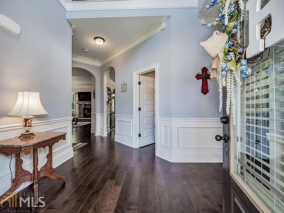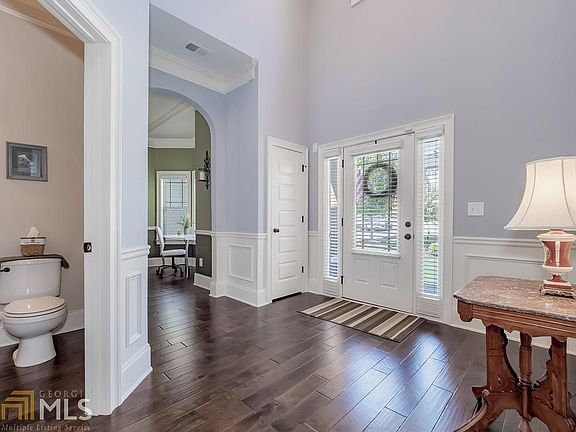 This stunning family home on a quiet Cul-de-sac is located in the sought after Mill Creek cluster close to shopping at the Mall of Georgia and Hamilton Mill. Fenced backyard backs up to woods providing complete privacy and space for relaxing in nature, entertaining around the fire pit or hanging out on the partially covered deck that runs the length of the house. Enjoy cooking while visiting with family and friends in the large open concept kitchen with stainless steel appliances, granite counters, bay window dining area and views to family room. Hardwood floors throughout the main level including dining and formal living rooms with soaring ceiling heights. Upstairs you will find a large master suite with en suite master bath and amazing closet space! 3 secondary bedrooms feature spacious vaulted ceilings and walk in closets. Come take a private tour today.