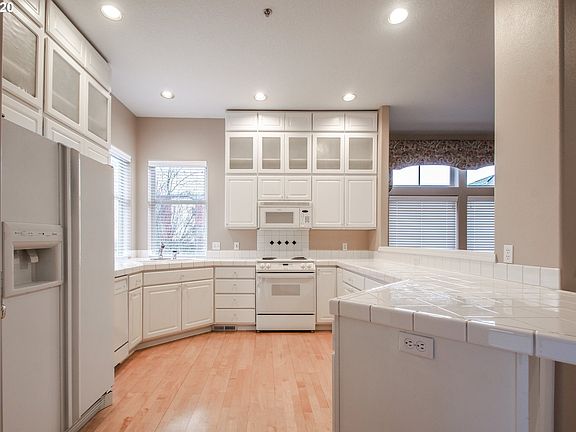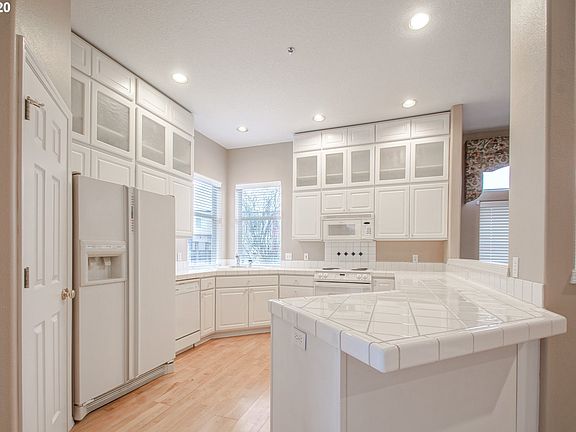 OPEN SATURDAY AND SUNDAY! Contemporary townhouse with 3 bedrooms + den, 3 baths, 2204 SF. CUSTOM INTERIOR designed for original owner. Penthouse-like & larger than any around the lake. Unique features: built-in vacuum, large jaccuzi, ceramic tile floors throughout, 2 sunrooms,heat pump, cobblestone courtyard, awesome Lake of the Commons, Tualatin Community Park across the street provides lots of visitor parking.