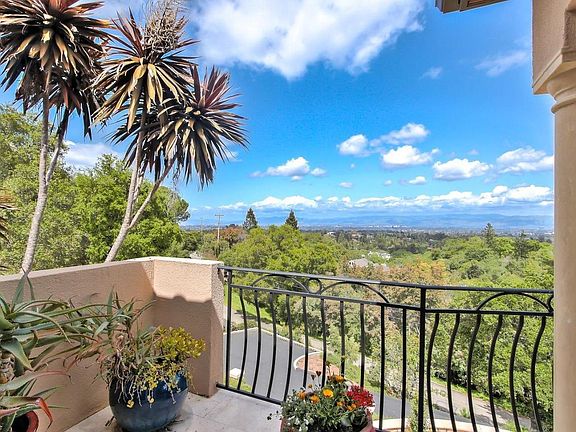 Stunning two-acre Mediterranean-style estate boasts privacy and breathtaking city light and mountain views from almost every room in the house. Elegant and inviting upon entering, this beautiful home welcomes you to generous rooms, soaring ceilings, hardwood and travertine floors, custom millwork and large picture windows allowing for an abundance of natural light. The beautiful design combines quality materials and craftsmanship with a cooperative flow throughout the home, creating a warm and comfortable ambience both inside and out. The attractively maintained grounds are a blend of natural and developed landscape including mature trees, colorful gardens, a lush lawn, multiple terraces and entertainment areas. Entertain or relax with family and friends or simply enjoy the tranquility. 1.4 miles to downtown Los Gatos. Desirable Saratoga Schools. / 4,709 sf of living space with 5 bedrooms and 4 bathrooms, plus approximately 450 sf finished basement, on approximately 2 acres / Double wood and beveled glass doors open to grand entry with travertine floors / Lovely formal Living Room features large picture windows, soffit ceiling, hardwood floors, cast stone gas fireplace and French doors to large limestone terrace with views of the Silicon Valley / Formal Dining Room offers a soaring ceiling, hardwood floors and sliding glass doors to a large terrace / Large Family Room with city-light views, high-efficiency gas fireplace with cast stone surround, and French door leading out to the front terrace. / Fantastic gourmet Kitchen with granite tile counters and splash, hardwoods, separate raised breakfast bar, large center island, beautiful wood cabinetry, walk-in pantry, top of the line appliances, ample counter and cabinet space, terrace access and expansive windows to peaceful mountain views / Kitchen appliances include: Dacor 6-burner cooktop, Sub Zero refrigerator/ freezer, Two Bosch dishwashers, Thermador warming drawer, Kenmore Elite double oven with convection feature, Trash compactor / Charming breakfast nook with picture windows / Butler’s pantry with granite tile counters, wood cabinets & wine refrigerator / Expansive Game Room features travertine tile floors, walls of glass, wet bar with granite counter, built-in speakers, door to downstairs theater and access to both large terrace and backyard / Large downstairs bedroom offers amazing views, outdoor access, carpet, ceiling fan and large walk-in closet with built-in shelves, racks and cabinets / Hall bath with pedestal sink, tile floors and tiled stall shower / Exquisite sweeping staircase with wrought iron railing / Double doors open to wonderful Master suite boasting a cozy seating area with a wall of windows, wet bar, refrigerator and a two-way gas fireplace to the expansive area with two sets of French doors to terrace and city light views / Spa-inspired Master Bath features granite topped double vanity with makeup counter, Jacuzzi jet tub, oversized tile stall shower with bench & dual shower heads, huge walk-in closet with built-in racks, shelves & drawers, travertine tile floors, linen cabinet & separate water closet / 2nd and 3rd upstairs bedrooms with carpet, large closets, outdoor access to terrace and connected by bathroom / Jack and Jill bathroom features two separate tiled vanities, tile topped counter, separate water closet, tiled shower over tub and a stall shower / 4th upstairs bedroom offers fantastic city views from a wall of windows, carpet and spacious closet / Hall bathroom with tumbled-tile travertine floors, marble topped vanity and travertine tiled shower over tub / Laundry room with granite counters, alder wood cabinetry, sink and tumbled-tile travertine floors / Wonderful Theater room with tiered floors, projection TV and Axiom surround sound speaker system / Bonus room attached to theater with outdoor access / Separate heating zones for each floor / 2 car garage plus RV parking / Extra storage space