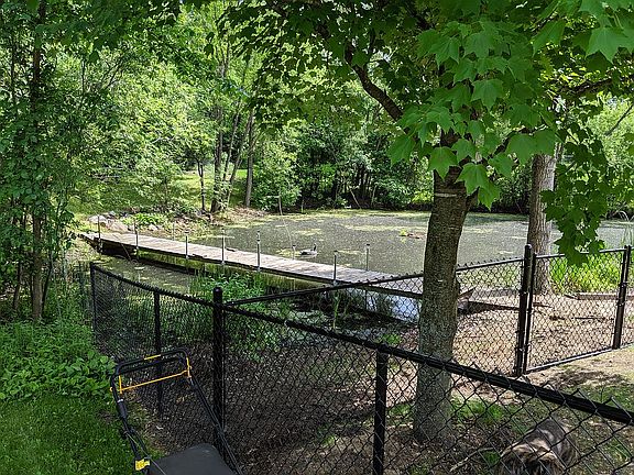 Private Rear Yard Oasis! Cross the Bridge...Relax & Take In the Stunning Scenery of Nature Pond & Wildlife! Gorgeous Curb Appeal is Only the Beginning! Magnificent Front Patio. Inviting, Open Floor Plan. Vaulted Ceilings. Wood Floors on the main level. Sun-splashed Kitchen/Dining Room. Eye Catching Stone Fireplace and built-in cabinets provide warmth & beauty. Spacious Main Floor Laundry. Finished Walkout Lower Level for Great Entertaining! Heated porcelain tile floors, Custom Bar, Natural Light, High Ceilings. Quiet Cul-De-Sac. In a Class All By Itself!