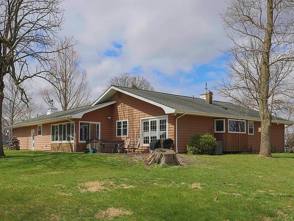 Spectacular country location on 3.32 acres, just over 1 1/2 miles into the town of Culver, Culver Academies, and beautiful Lake Maxinkuckee! This stunning 4 bedroom ranch has 2 1/2 bathrooms and has had updates as recently as 2021: high efficiency HVAC with smart thermostat, hardwood flooring, ceramic tile and carpet throughout, opened up the living room to create more open space, recessed lighting and newly painted throughout. Kitchen is a dream with granite countertops, kitchen bar and eat-in area. View of the neighbor's pond from the bay window is so peaceful. Large living room area is so comfy with the brick fireplace that has gas logs. 4 season room off of the living room looks onto the back wooded area, brick patio with hot tub (negotiable), and fire ring. Entrance to mudroom from attached 2 car garage is convenient, with washer/dryer, laundry sink, and 1/2 bath. Just off the living room is an office space with built-in desk and cabinets. Entrance from this room and the garage to the full, unfinished basement. So much potential in the basement! To top this property off, there is a 60x30 pole barn with 3 garage doors and a room that had been used as a chicken coup. This property is a must see for those who love the peace of the country but want to be close to town! Buyers to measure for own satisfaction.